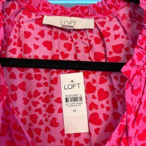 NWT Loft Ruffle Short Sleeve Top Color: Pink & Red Hearts Size: M