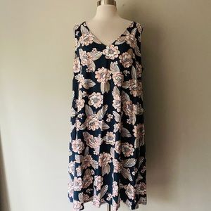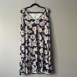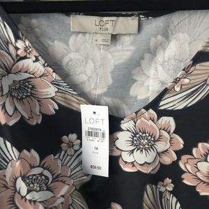 NWT Loft Plus Gray & Pink Soft Jersery Floral V Neck Swing Dress Women's Size 14