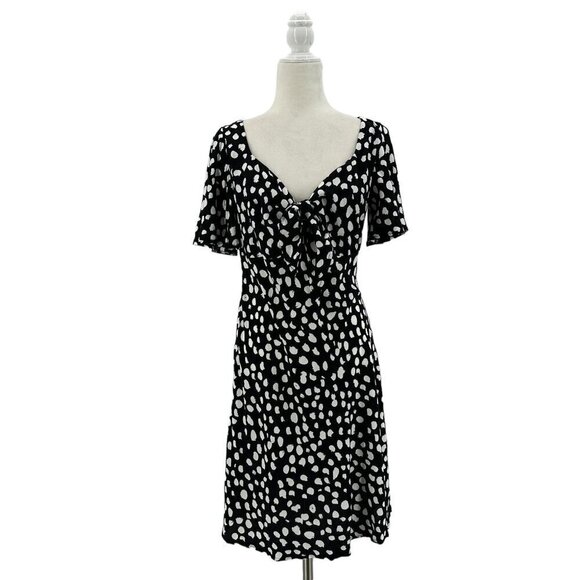 NWT Ann Taylor Loft Polka Dot Black White Flutter Sleeve Short Dress Women's Size Small - Lightweight short sleeve V-neck short style dress - black with a white abstract polka dot pattern. Tie at the neckline. Short flutter sleeves. Zipper & clasp closure on the back. 100% Viscose. Party, cocktail, going out, summer dress, date night, wedding guest attire
