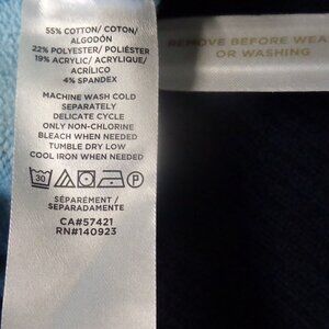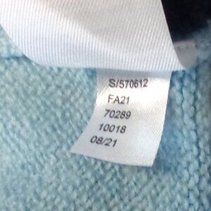 *Women's sizes are going to drive me that short distance to insanity. I just listed something earlier that claimed to be a 3X, but was smaller than this. So I guess we'll call this Oversized XL? It's very cute, so I hope someone decides it's their size. I love the wide stripes, and these 2 shades of blue have always played well together. It's got a high neck, not necessarily a mock turtleneck, but a high crew neck maybe? Straight high/low hem with side slits, will be warm and snuggly in the cold months that are coming.