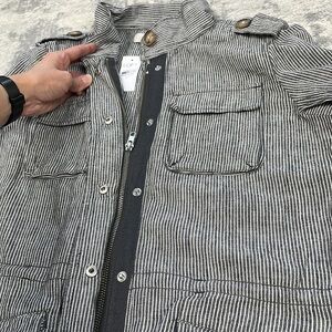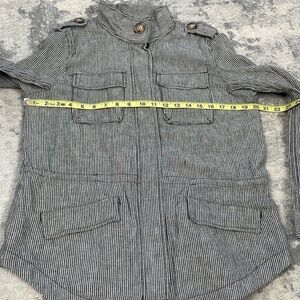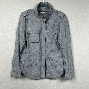 NWT Loft Striped Twill Utility Jacket Linen Cotton Gray White Full Zip Sz S