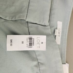 New light sage green Loft Riviera Shorts scallop hem 2 faux front & back pockets zip closure 4" inseam smoke-free home 2340 DD