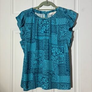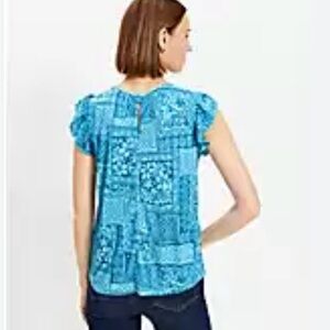 NWT Loft Tile Flutter Sleeve Mixed Media Top, Size Large
