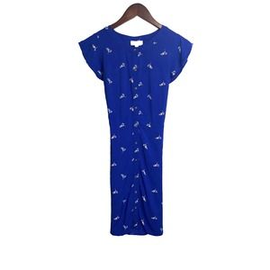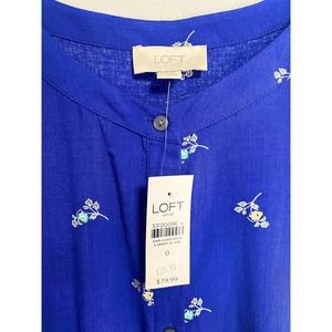 NWT Loft Women’s Button Up Tie Back Mini Dress All Over Print Floral Blue Size 0