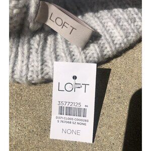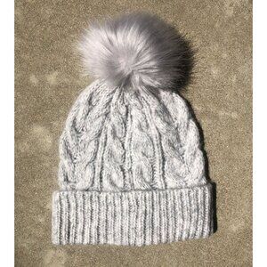 NWT Loft Women's Cable Knit Beanie Hat With Faux Fur Pom OS Gray Winter Snow