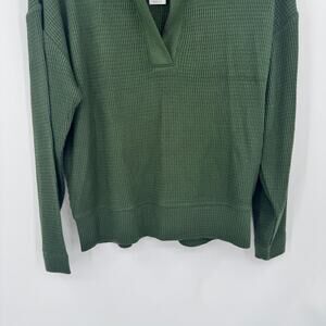 NWT Loft Women's Medium Casual Waffle V Neck Long Sleeve Rayon Green Sweater