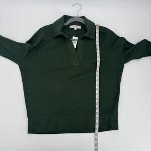 NWT Loft Women's Medium Waffle Collared V Neck Long Sleeve Rayon Green Sweater