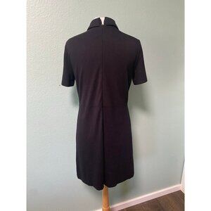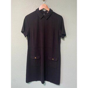 NWT Loft Women's Ponte Button Black and Gold Collared Pocket Shirt Dress Medium