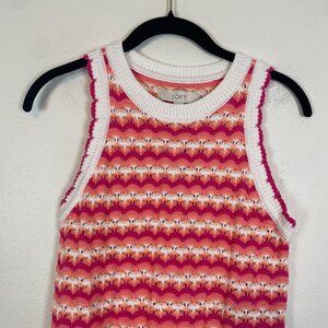 NWT Loft Women's S Pink White Scalloped Halter Sweater Sleeveless Summer 70s