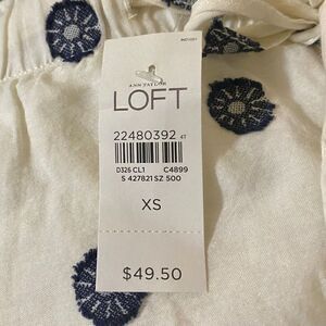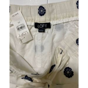 NWT Loft XS Off White & Navy Shorts Slash Pockets Pull On Drawstring Closure