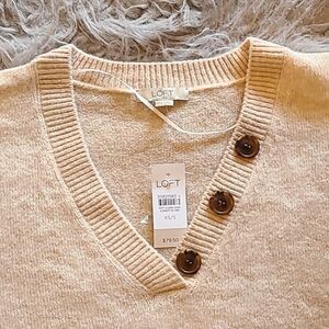 NWT Loft acrylic tan oversized vneck sleeveless cropped sweater size xs