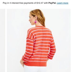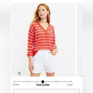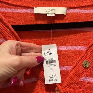 NWT Loft size XL Striped Roll Tab Henley Sweater pink orange stripes
