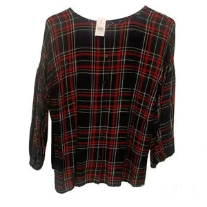 NWT Loft spartan Plaid Button Back Balloon Sleeve Blouse sz xs
