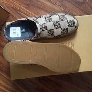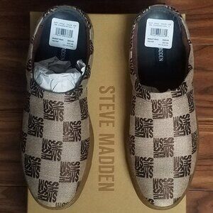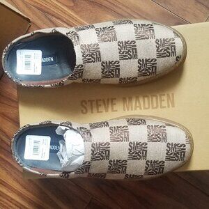 NWT Logo Beige Steve Madden Slippers, size 8.