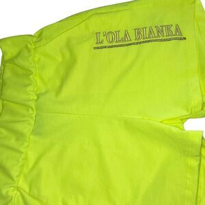 NWT L'ola Bianka Neon Green 3 Piece Short Track Set Logo Embroidered - Short Sleeve Hoodie, Shorts & Tank