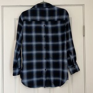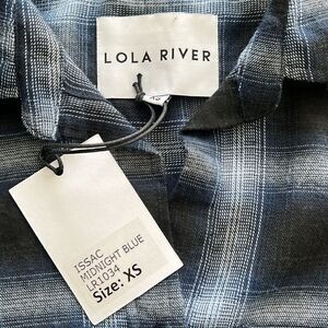 Brand new with tags, Lola River Issac Midnight Blue Flannel Plaid Button Down. Oversized Fit. Button closure in the front and back of the shirt. Very soft.