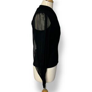 NWT Lola & Sophie Camille Twisted Neck Blouse Silk Chiffon Sleeves Black Sz XS