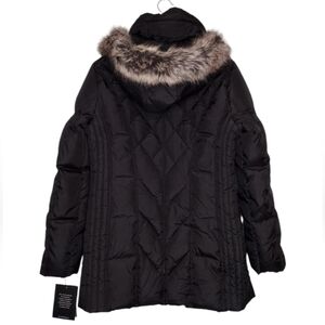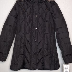 NWT London Fog Women's Black Quilted Coat Faux Fur Hood Fall Winter Jacket Sz M