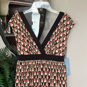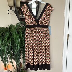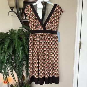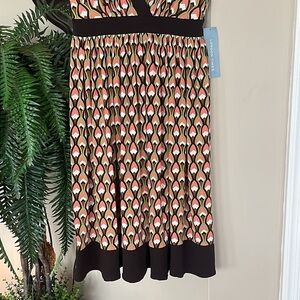 NWT London Times Brown Coral Geometric V-Neck Stretch Knit Sleeveless Dress. Brand new! Women’s size 4. So pretty!