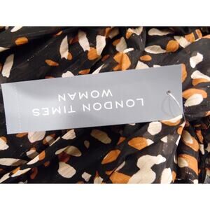 Get ready to turn heads with this stunning London Times dress! The chic fit and flare design features a flounced hem and a tie at the neckline for a touch of elegance. The dress is made from high-quality chiffon fabric that flows beautifully and is lined for added comfort. With a vibrant multicolor pattern and classic London theme, this dress is perfect for any occasion, whether you're attending a formal business meeting, a cocktail party, or just exploring the city. The dress is available in size 16 and has 3/4 balloon sleeves, making it a versatile addition to any wardrobe. Don't miss out on this must-have piece!