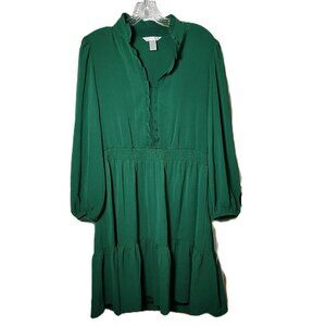 NWT London Times Green Ruffle Shirt Dress Size 12 | Long Sleeve Elastic Waist