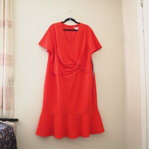 NWT London Times Nordstrom Scarlet Red Halie Twist Flounce Hem Dress sz 20W