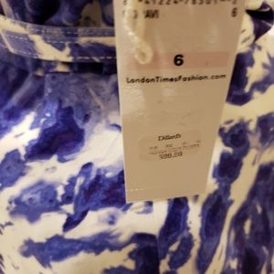 NWT Sz 6 London Times dress It has a back zipper and a matching thin belt. It is in purple and white and is an abstract print. The cotton and spandex fabric.