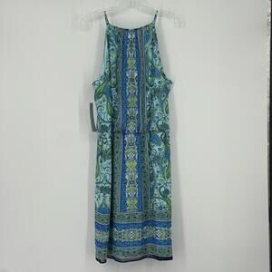 NWT London Times Sleeveless Blue Paisley Dress Sz 14 Garden Fairy Flowy Y2K 90s