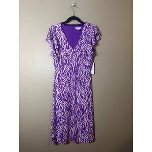 NWT London Times Women's Dress V-Neck Ruffle Sleeve Purple SZ 8