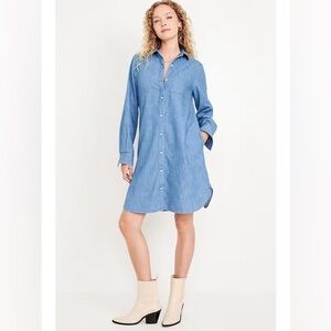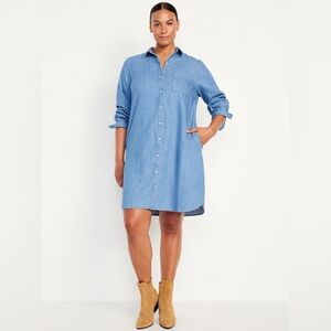 NWT! Long Sleeve Blue Denim Mini Shirt Dress - Size Small