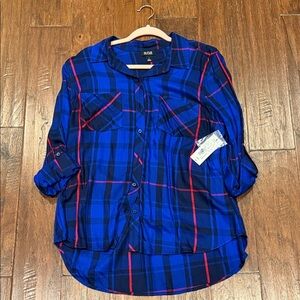 NWT! Long Sleeve Blue and Red Plaid Button-Up Shirt