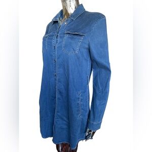New with tags, this small-sized denim dress offers style with comfort. Perfect for casual outings or a laid-back office look.