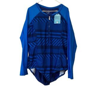 NWT Long Sleeve Half Zip Swimsuit UV Skin Blue Size 3X UPF 50+ Rash Guard
