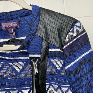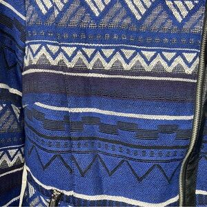 NWT Long Tall Sally Aztec Print Biker Jacket Women's 6 Blue Black Pockets Zipper