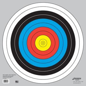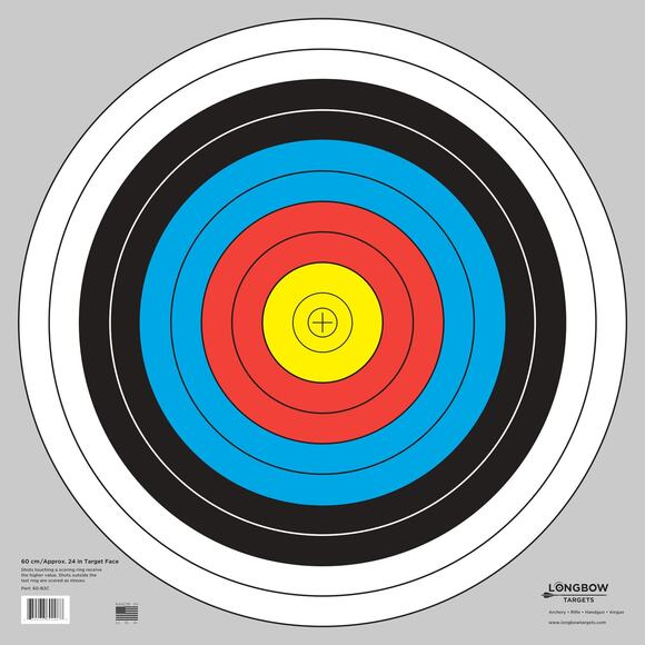 Longbow 60 cm (24 in) bullseye targets feature a clear 10-ring design ideal for archery practice and firearms training. The large 100-pack offers excellent value for clubs, ranges, and serious shooters.