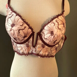 NWT Longline floral satin bra 36B lace push up bra with underwire and support side panels. Contrast colors for each bra make these so beautiful you’ll definitely want to show them off. Sheer side color matching panels with four hook and eye closures with a deep v-plunge in the middle. These are just gorgeous!!