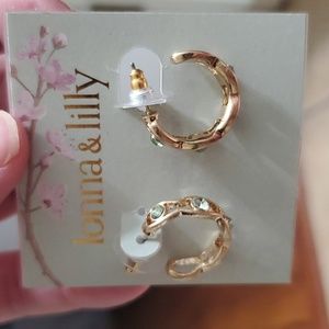 ☆NWT☆ Lonna&Lilly gold hoops with green rhinestones