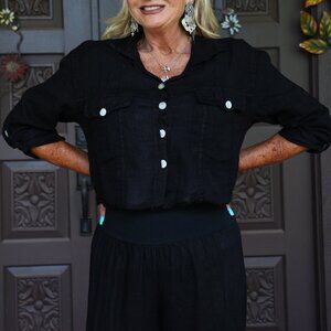 NWT Look Mode Black Raw Edge Cropped Linen Jacket