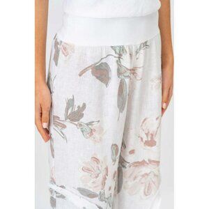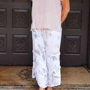 NWT Look Mode Floral Linen Pants With Ruffle Detailed Leg in Off White
