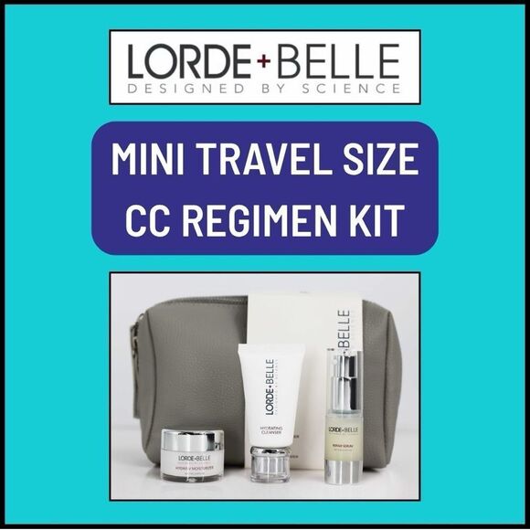 NWT Lorde + Belle MINI TRAVEL SIZE CC Skincare Regimen Trio KIT W. BAG -MSRP $99
