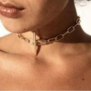 Offers just the right amount of edge and statement yet looks so effortless. Get the layered look in one simple step with this chain link bracelet with toggle detail and can also be layered with your other bracelets. Toggle chain can be worn as a 15" choker or as a bracelet when wrapped twice around the wrist. Lobster clasp for safety. Its long links are an artful addition to any outfit. Brand new item, never worn. Great addition to your jewelry collection or give as a gift!