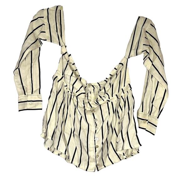 **NWT** Lost Ink – Striped Bardot Top – Ivory/Black Stripe – XS