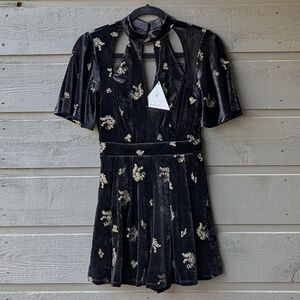 NWT Lost + Wander Genevieve Black Velvet Embroidered Romper Size XS