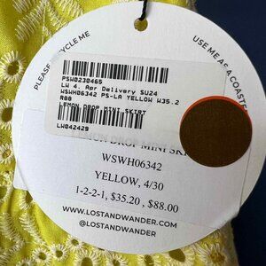 NWT! Lost + Wander Lemon Drop Yellow Mini Skirt, Size Small