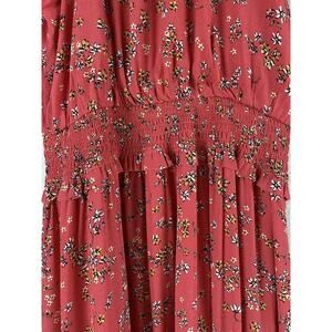 NWT Lost & Wander Red Floral V Neck Sz S Pockets Shirred Waist Lined Maxi Dress. Measurements in photos