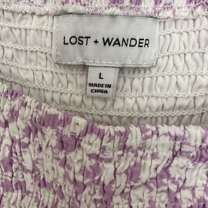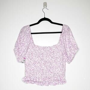 NWT Lost & Wander Smocked Floral Crop Blouse Top Women Purple White Size Large