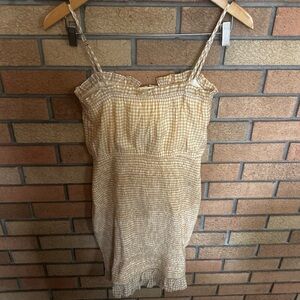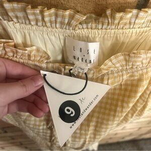 NWT Lost & Wander Yellow & White Gingham Ruffle Smocked Mini Dress Size Small