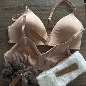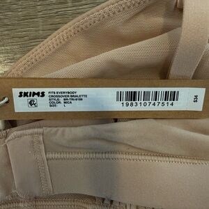 Brand new with tags SKIMS bras. One bralette size large and one T-shirt bra size 36C. One 2 pack of scrunchies and one headband. All are new with tags. Please see all photos for additional detail details.