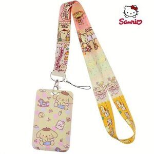 *****Sanrio Pompompurin Hello Kitty Neck Lanyard with ID Badge Holder Keychain