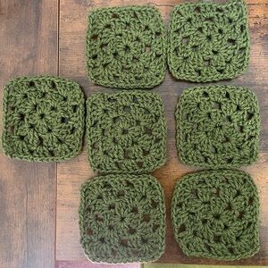 NWT sweet of 7 Granny Square, Hunter Green, Craft project squares handmade crochet
